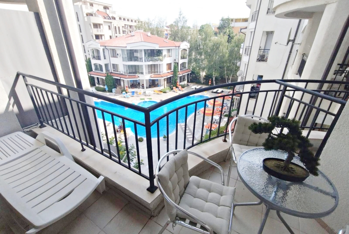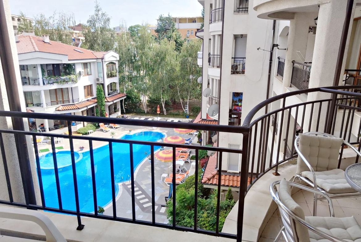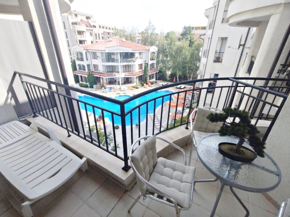 A bright apartment in Chateau Valon complex in Sunny Beach is offered for sale. The apartment is fully equipped and ready for immediate occupancy. This cozy space is located just a ten-minute walk from the famous beach of Sunny Beach, Bulgaria.
