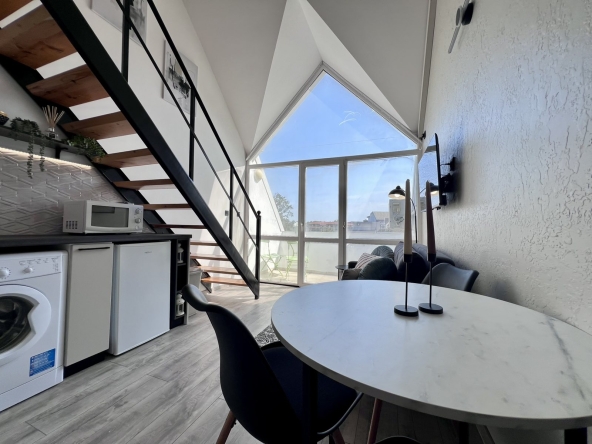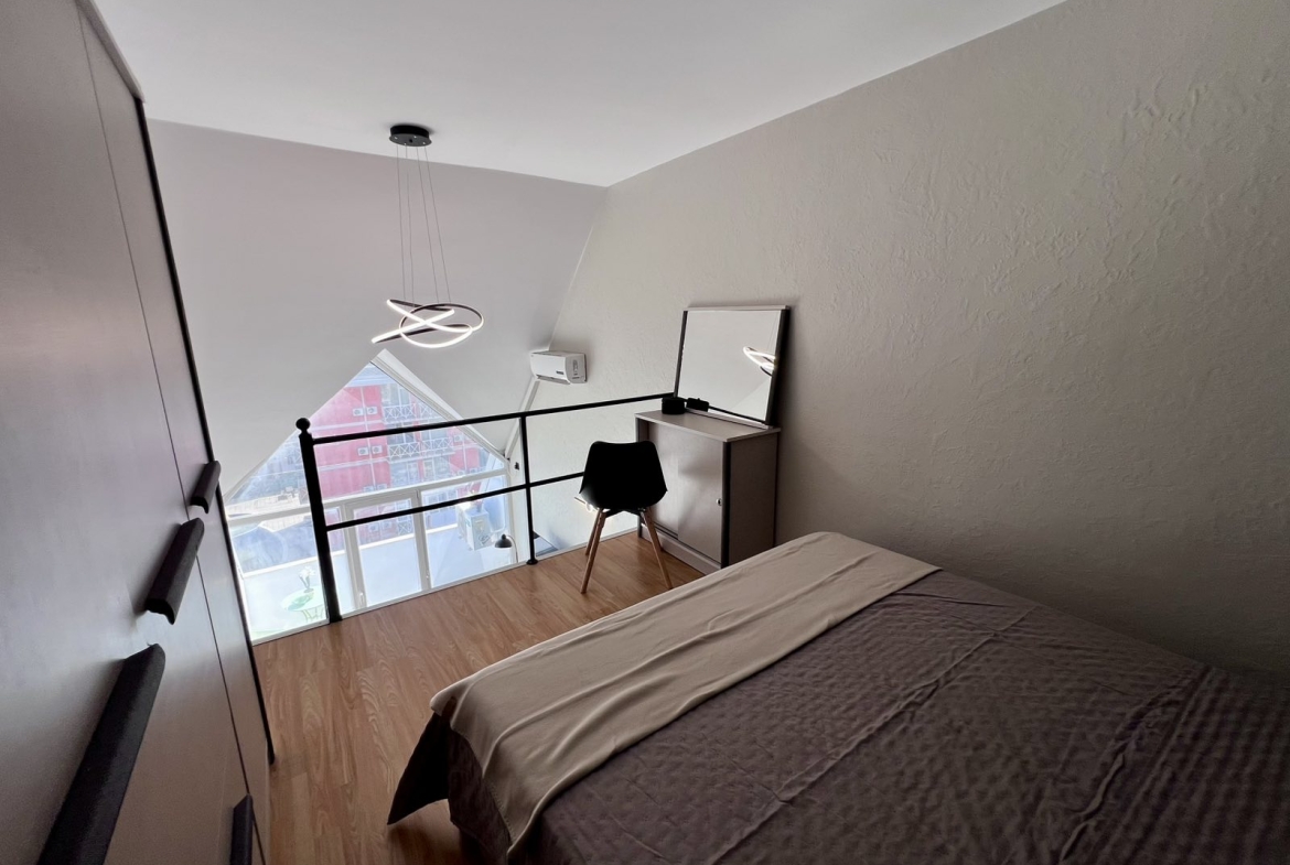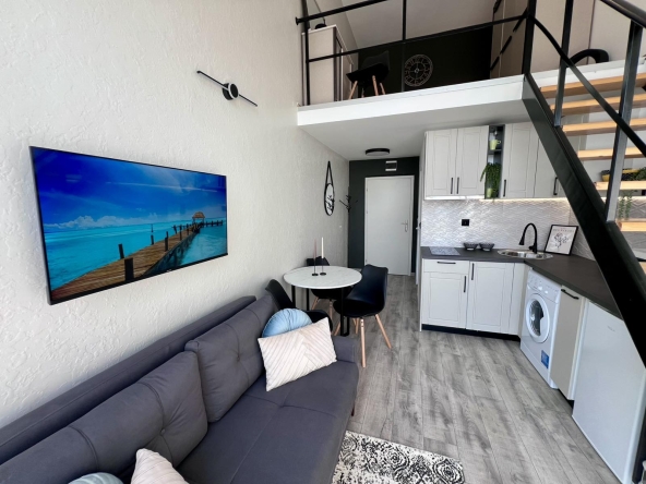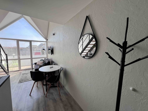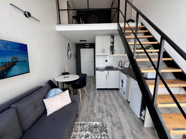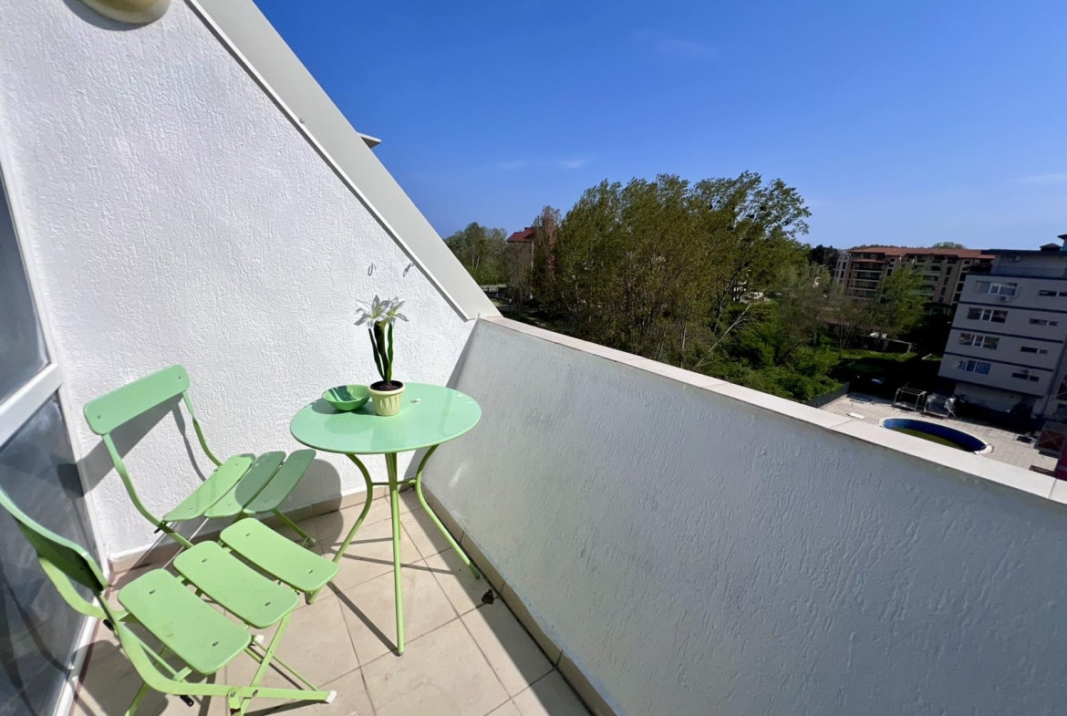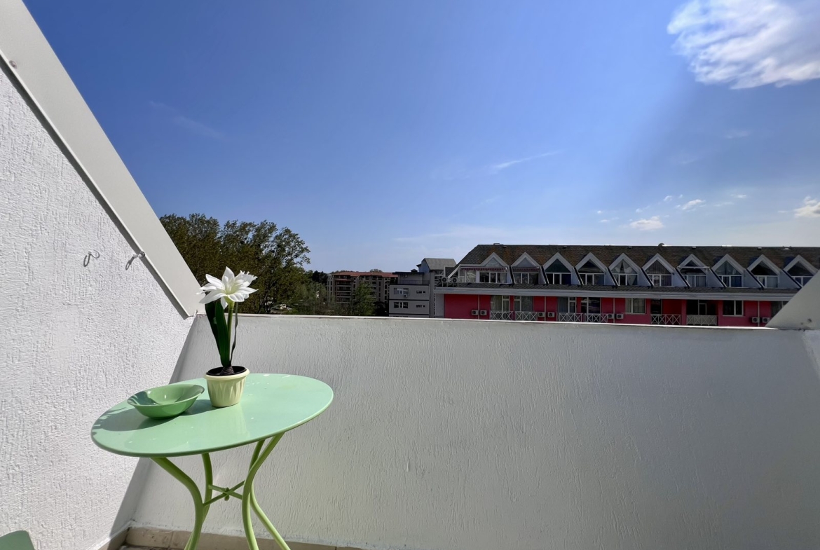 This is a duplex apartment in Gerber Residence 1, after renovation with new furniture and appliances. On the first floor there is a living room with kitchen and bathroom, on the second level there is a bedroom with closet. The apartment in the complex Gerber Residence 1, Sunny Beach is suitable for living all year round.