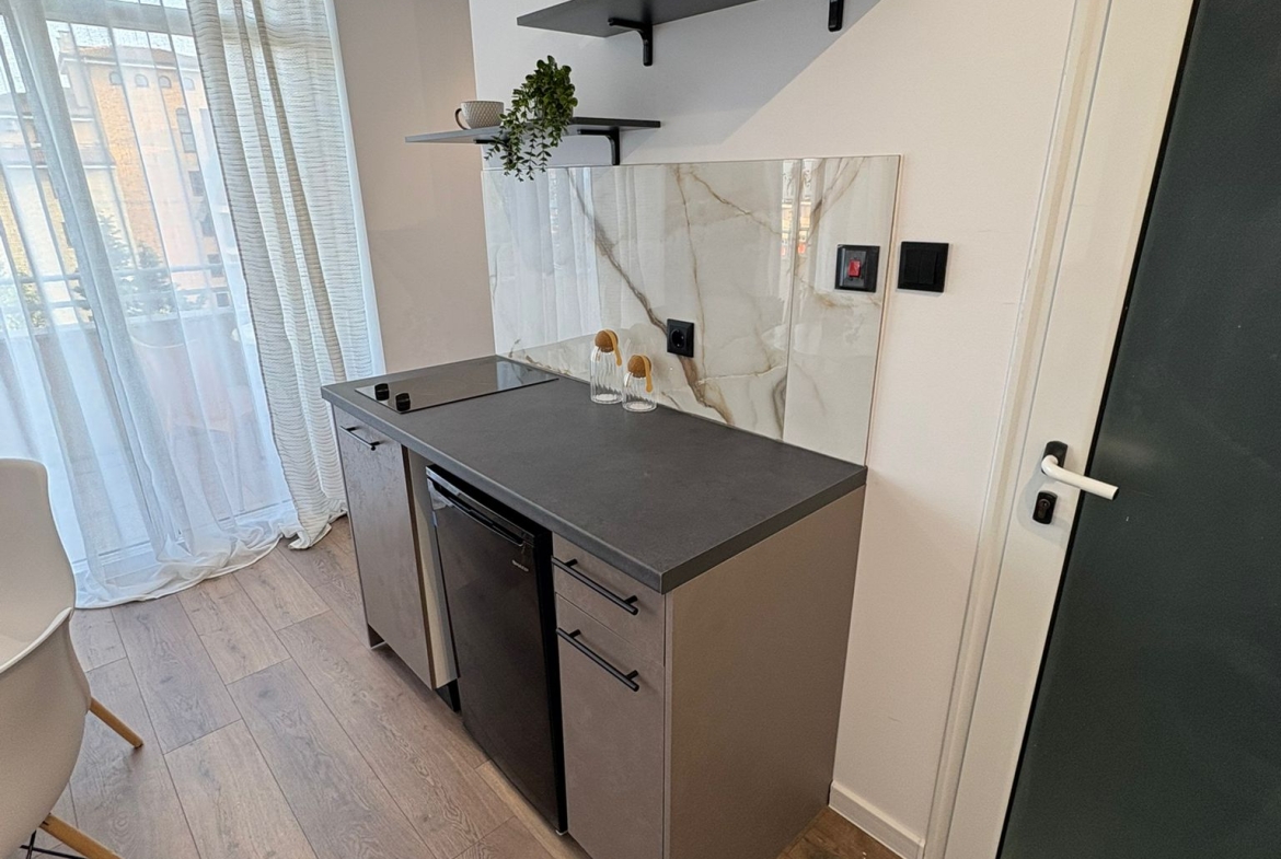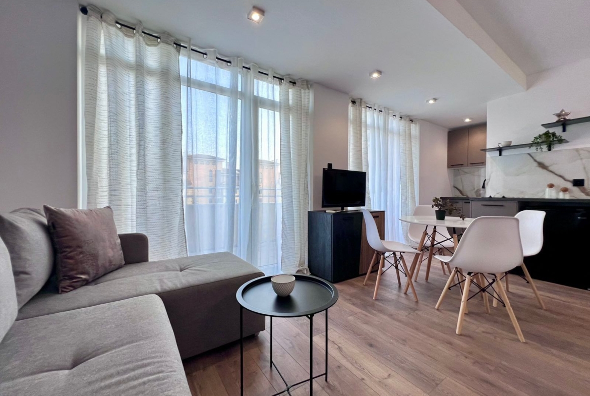We offer for sale a fully furnished one bedroom apartment located on the fifth floor. Inside – a cozy living room with a compact built-in kitchen, a secluded bedroom and a modern bathroom. From the windows of the apartment offers a picturesque view of the sparkling pool and the surrounding beauty of Kamelia Garden.