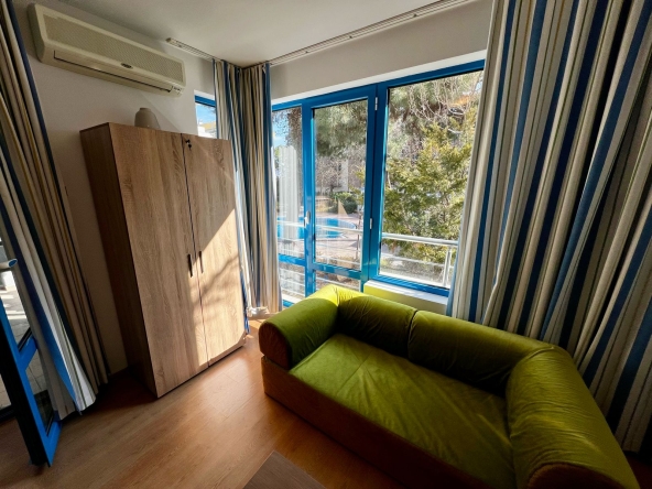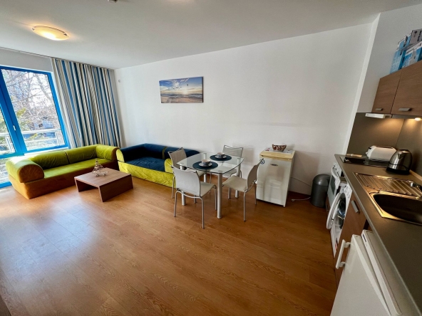 Offered for sale apartment in Excelsior complex with pool view, Sunny Beacht. Apartment is fully equipped and ready for immediate occupancy. This cozy space is located just five minutes walking distance from the famous beach.