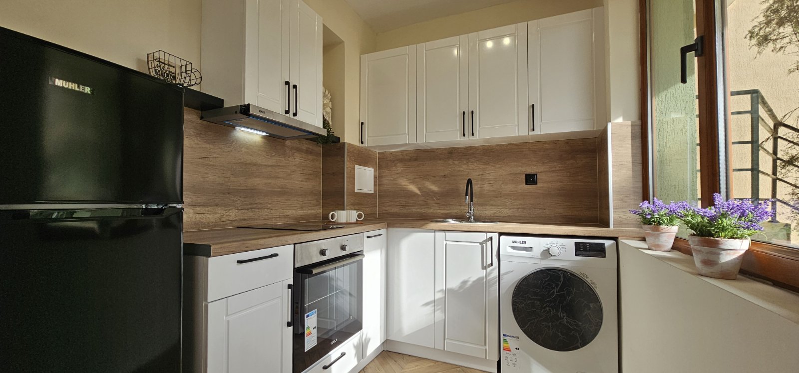 The apartment has been completely renovated with new furniture and appliances, and two air conditioners for heating and cooling have been installed. Closed parking is available for the owner of the apartment.