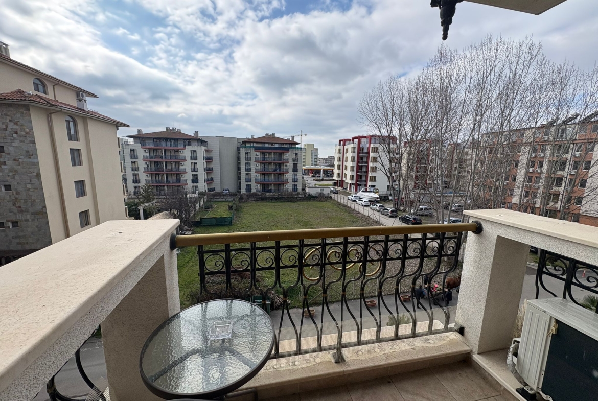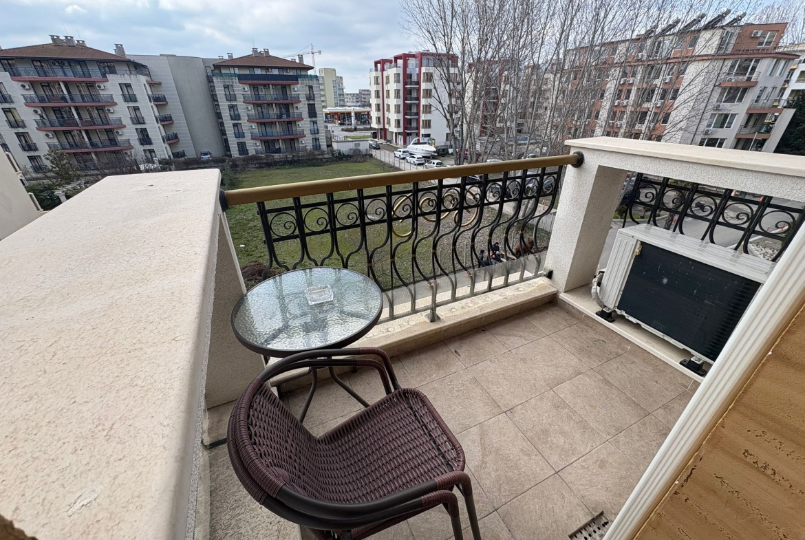 Comfortable apartments with spacious rooms, internet access on site, and well-developed infrastructure in the area make this complex a favorite place for tourists and apartment owners. Restaurants, bars, grocery stores, coffee shops, souvenir shops, pharmacies, and bank branches are all located near the complex. The beach is 800 meters away, where you can enjoy the sun and sea on both paid and free areas. Water activities, massage services, restaurants and bars, slot machines, and an amusement park are all located in the vicinity of the beach. There are several supermarkets in the area that are open all year round. The bus station is 500 meters from the complex, from where buses run to any city in Bulgaria.