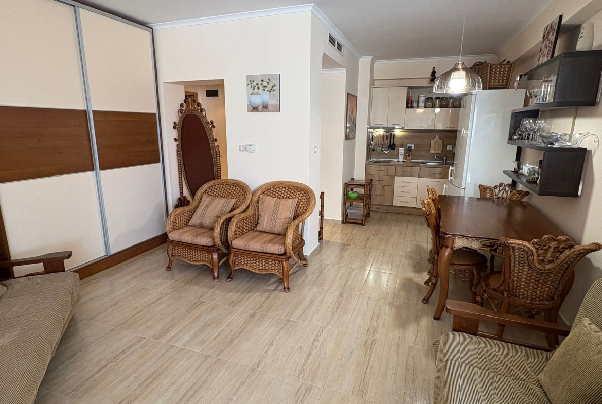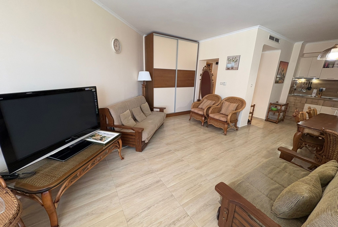 The Majestic complex, located in the famous resort of Sunny Beach, is a four-star complex distinguished by its elegance and modern design. The apartment in Majestic is located on the seafront, ready to move in and equipped with furniture and appliances.