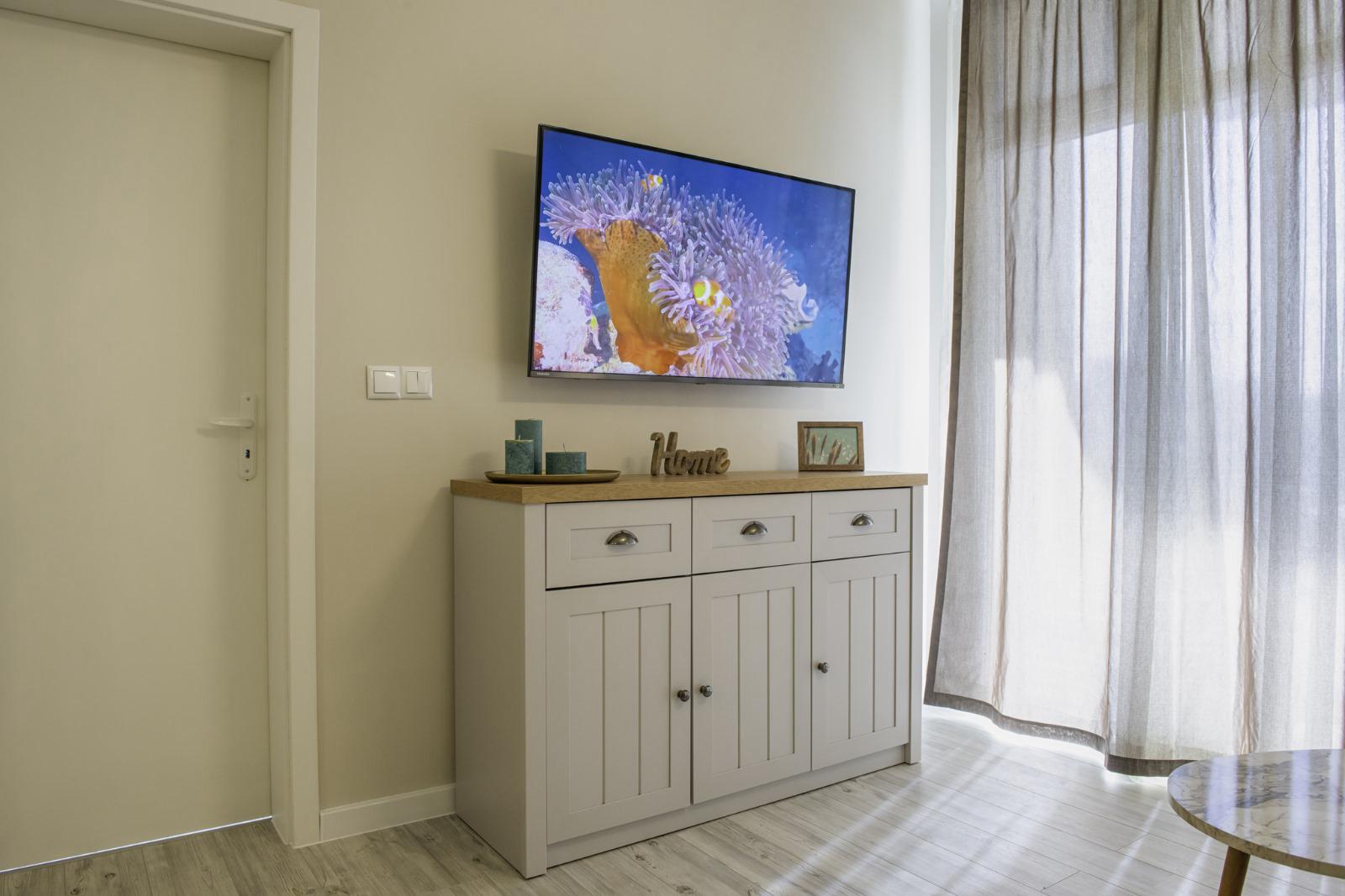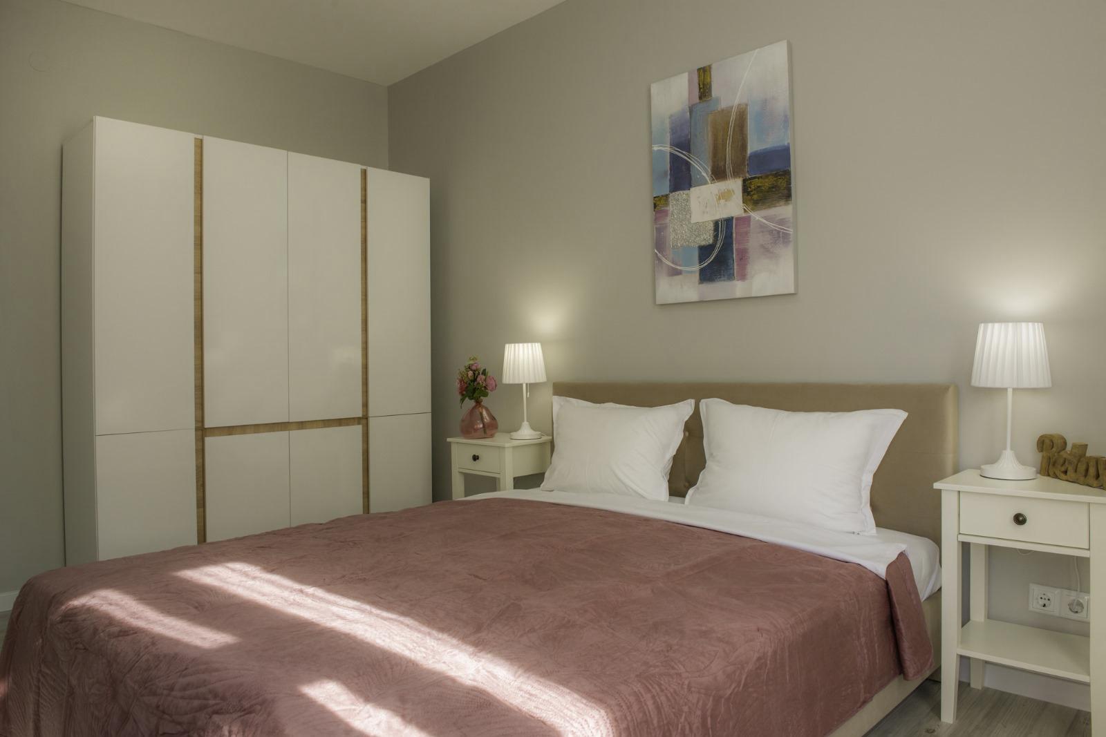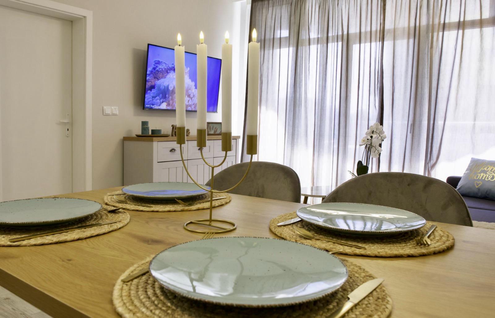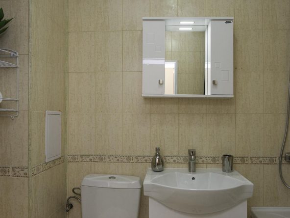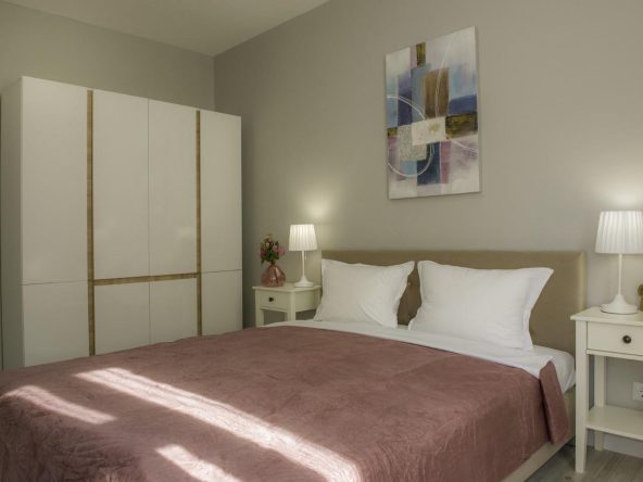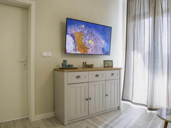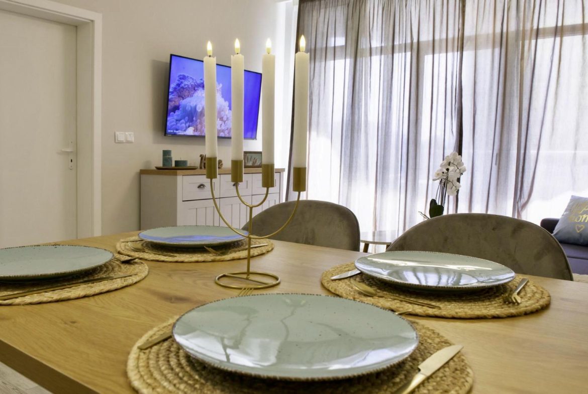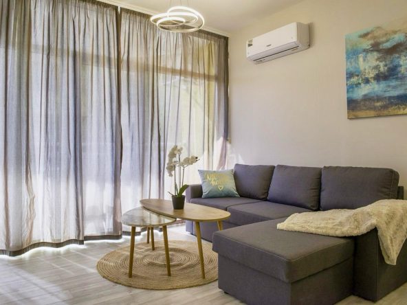 The apartment is sold with furniture and appliances.