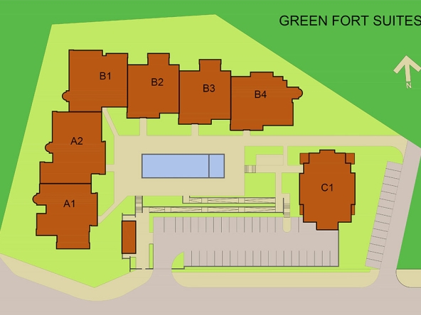 Complex Green Fort Suites offers a guaranteed sea view from most of the apartments. The bustling discos of Sunny Beach and the yacht marina are a ten-minute drive away. There is guest parking on the territory, including parking spaces that can be purchased into ownership, above and underground. A cozy swimming pool in the center of a spacious courtyard, a playground, a large area of landscaping – flower beds, lawns.