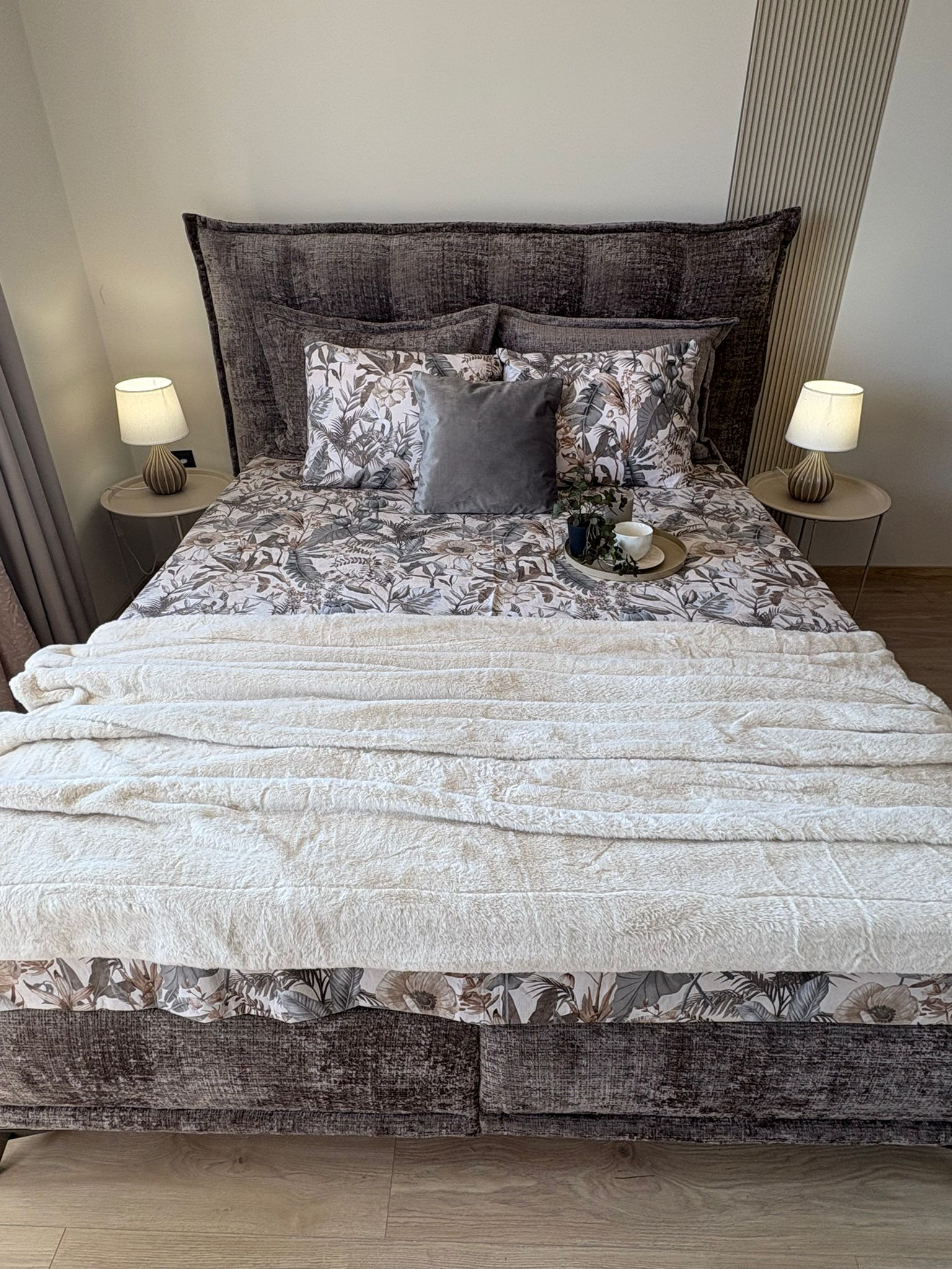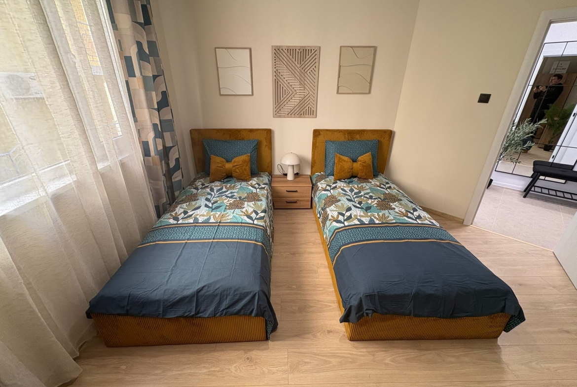 • Планировка: Просторная гостиная, две уютные спальни и два санузла.