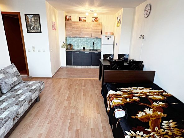 Предлагаем на продажу полностью меблированный апартамент в комплексе Холидей Форт Нокс. Апартамент оснащенный техникой и мебелью на курорте Солнечный берег!