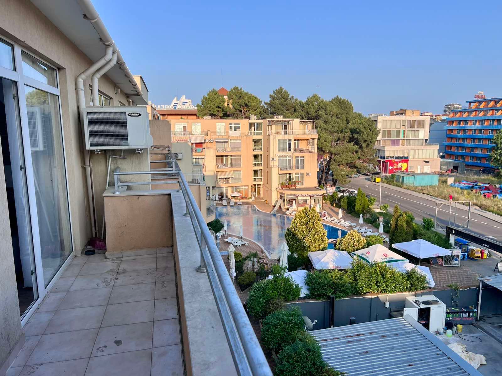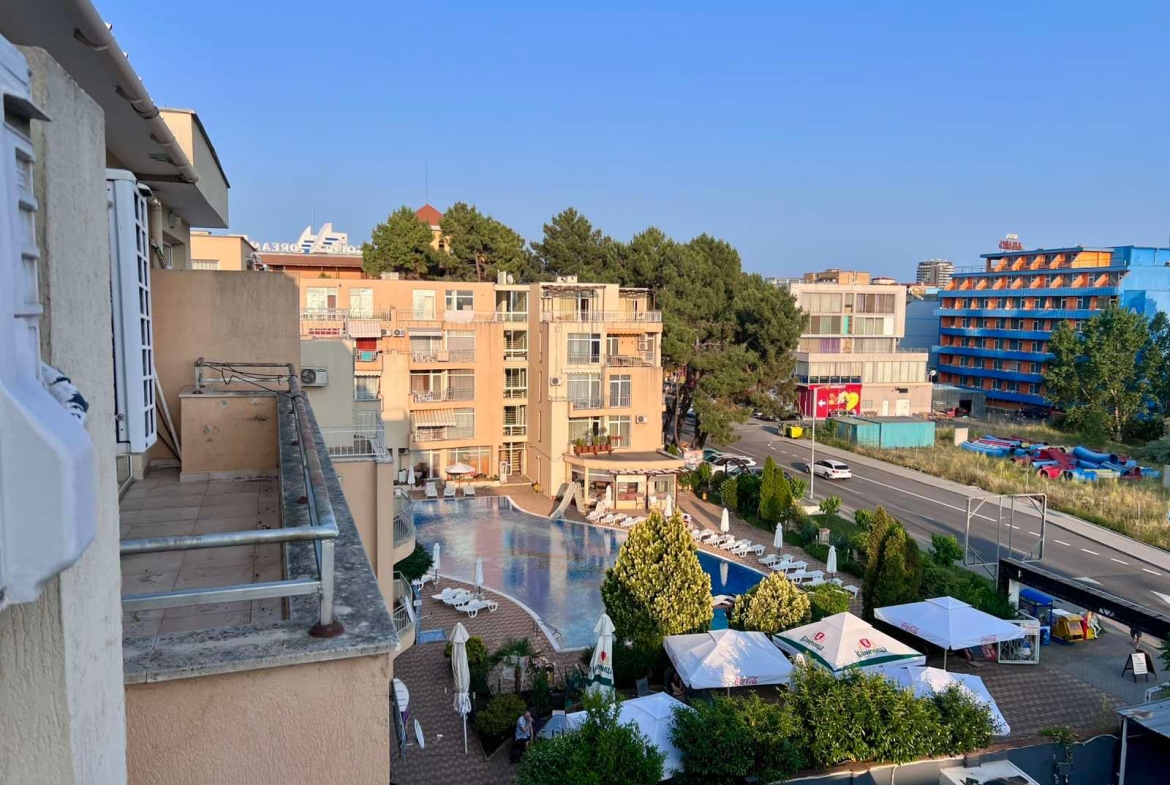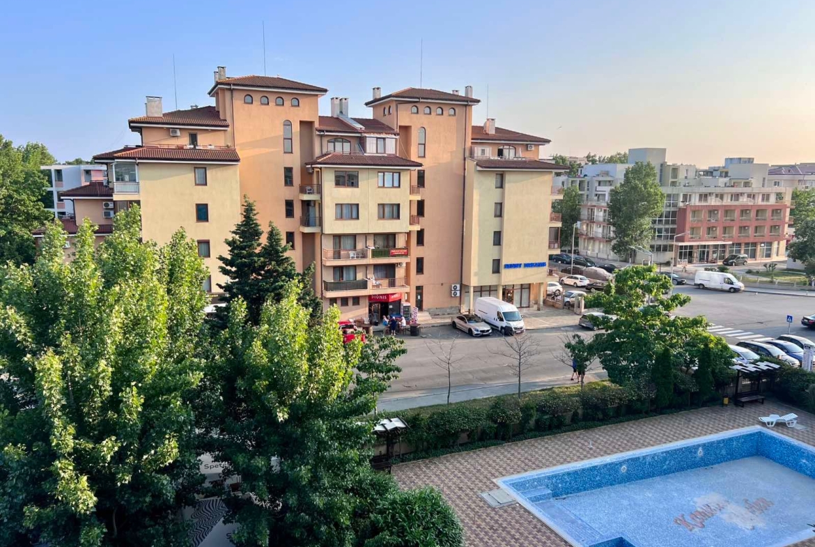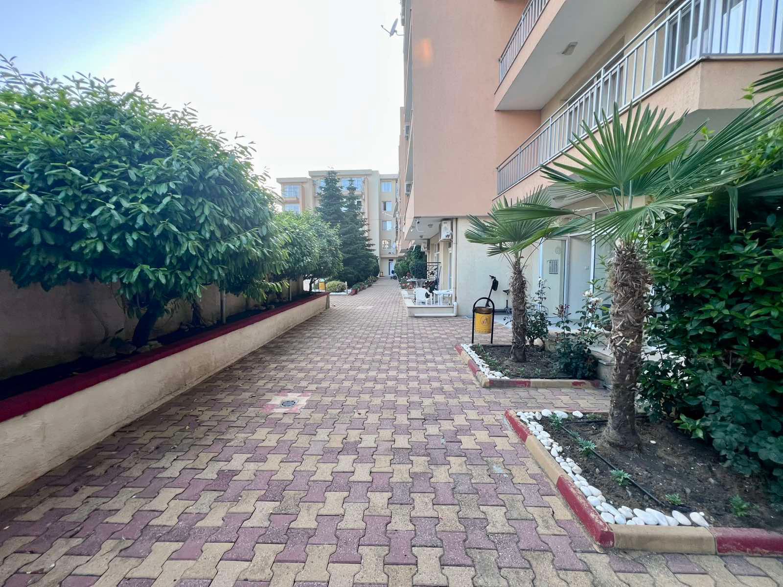 В сердце солнечного великолепия болгарского побережья, вблизи оживленного центра курорта Солнечный берег, раскинулся четырехэтажный – комплекс апартаментов Kamelia Garden. В его укрытом от посторонних глаз дворе, словно лазурное око, сверкает бассейн с отдельной секцией для маленьких пловцов, окруженный просторной зоной для неспешного отдыха под теплыми лучами солнца. Рядом, словно магнит для детского смеха, расположился красочный детский уголок. Инфраструктура комплекса заботливо включает в себя ресторан, где можно насладиться изысканными блюдами, и современный фитнес-центр для поддержания формы.