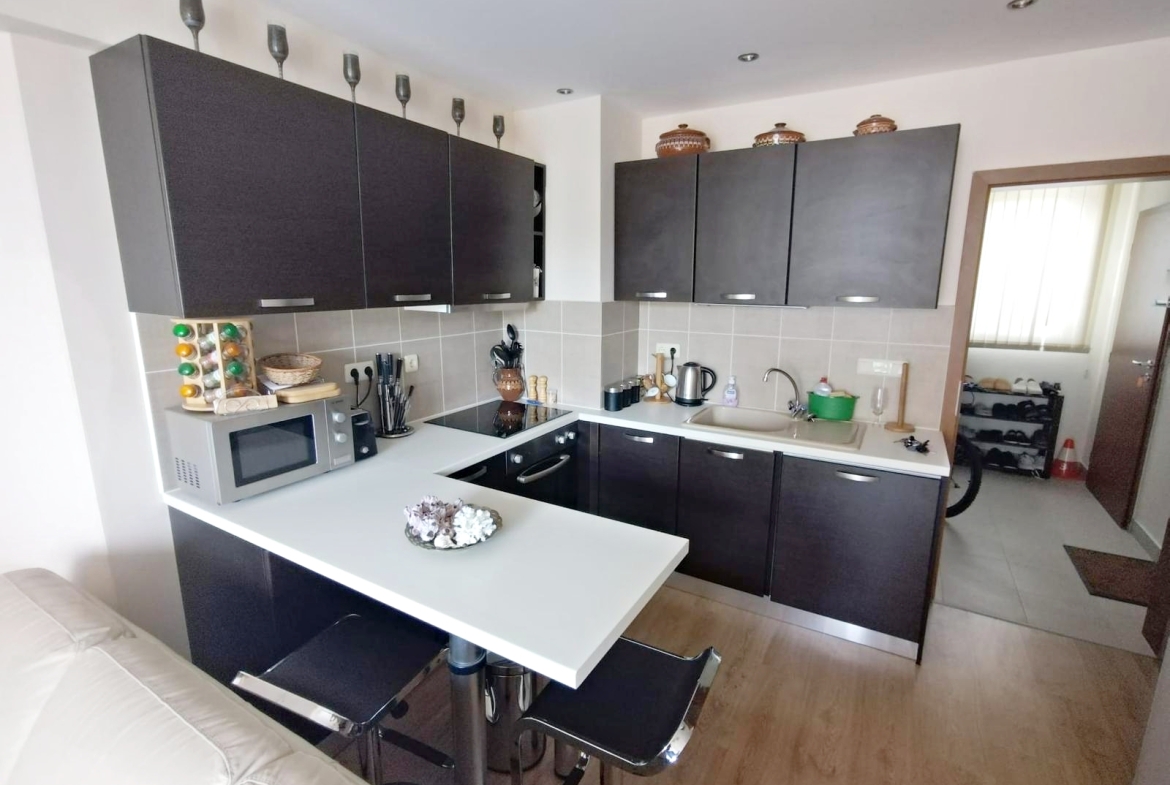 Предлагается на продажу светлый апартамент в комплексе Шато Валон, Солнечный берег с двумя спальнями. Квартира полностью оборудована и готова к немедленному заселению. Это уютное пространство расположено всего в десяти минутах пешком от знаменитого пляжа Солнечного берега, Болгария.