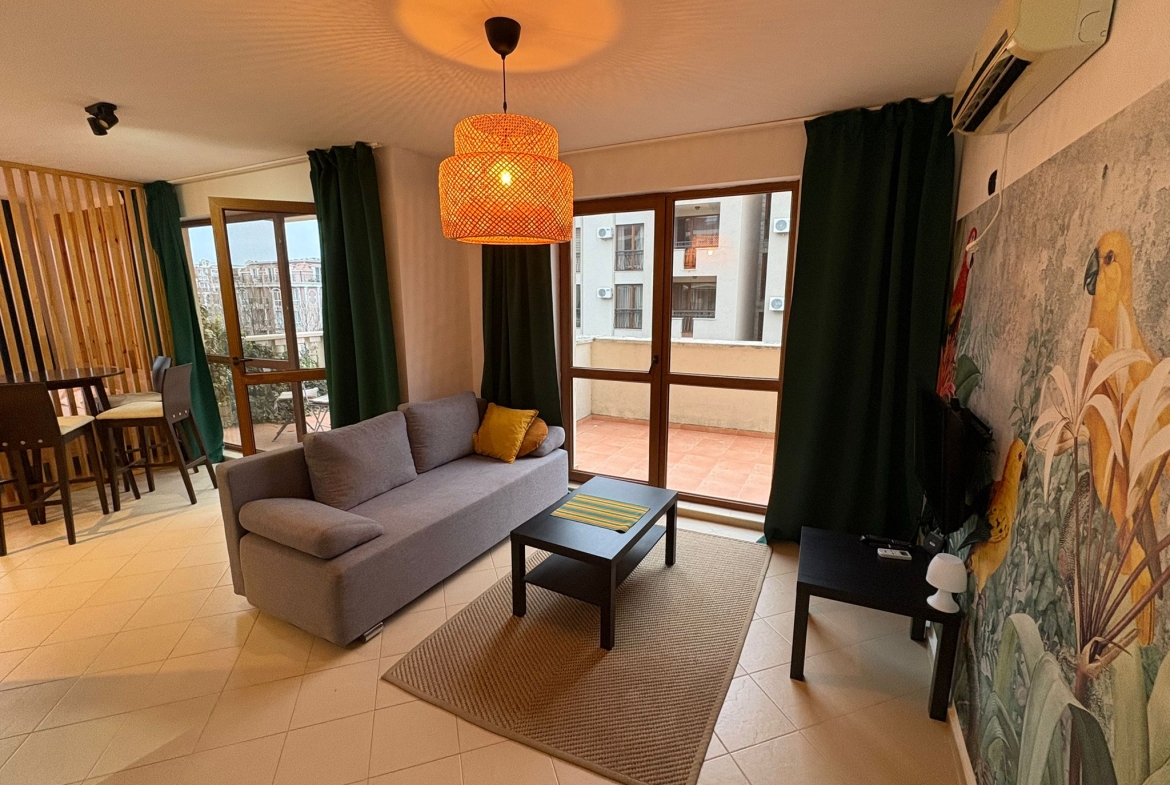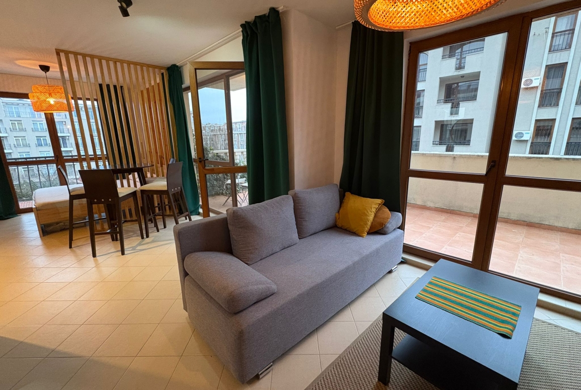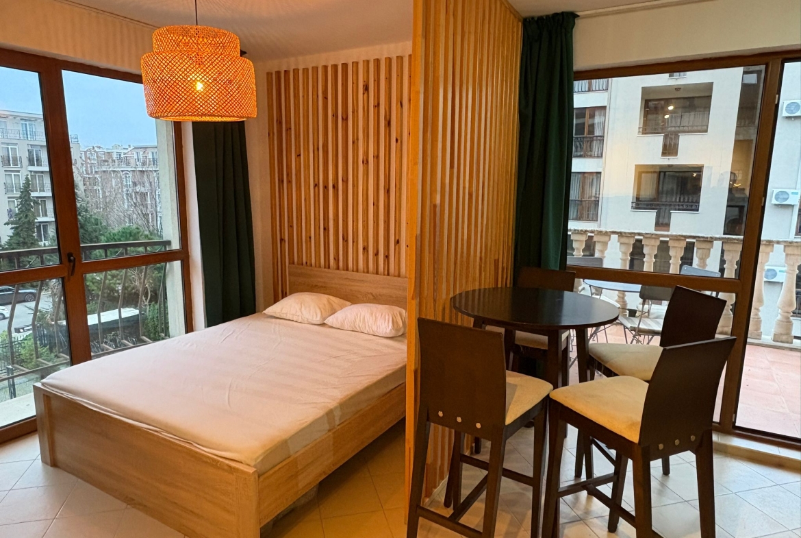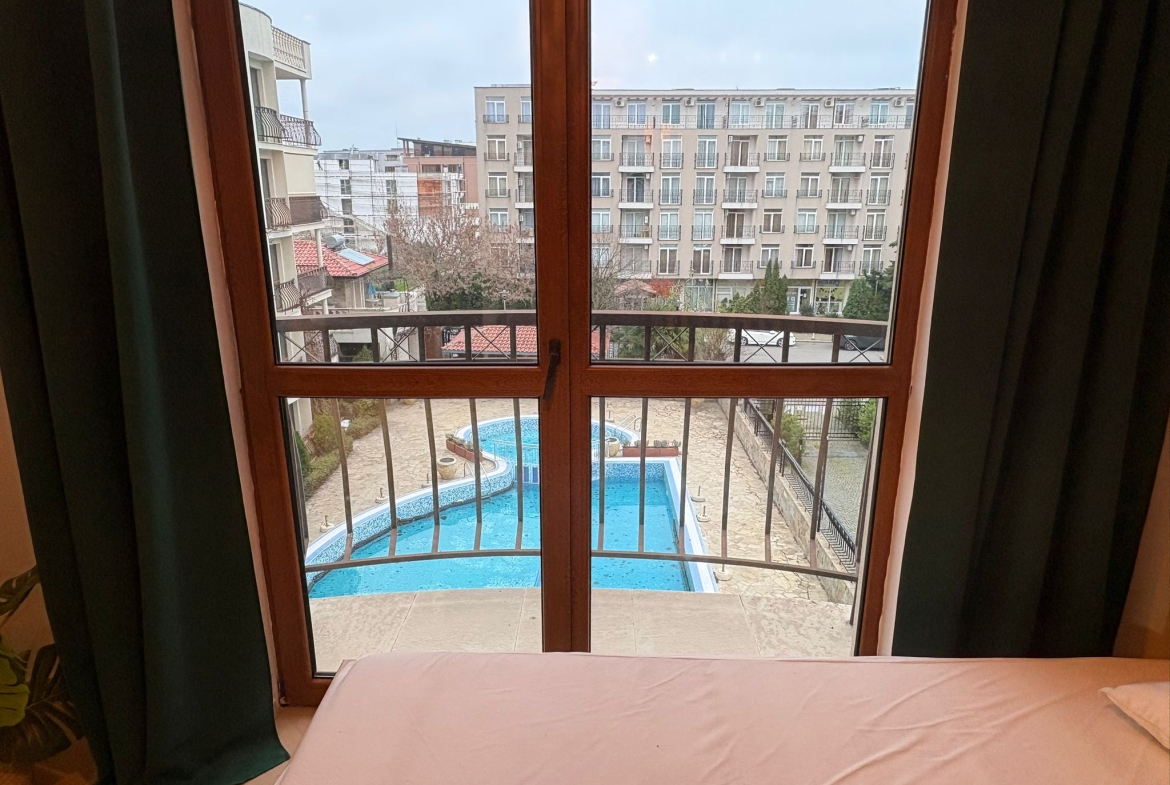 Предлагается на продажу уютное студио в Каскадас 1, Солнечный берег. В апартаменте есть все необходимое для круглогодичного проживания и летнего отдыха.