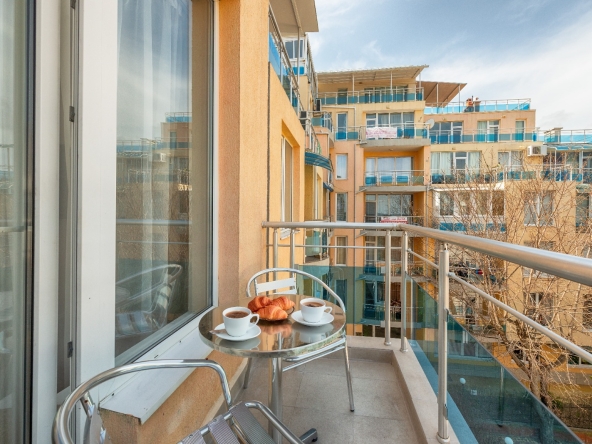 Предлагается на продажу студио в комплексе Оазис в Равде. Студио полностью меблирована и укомплектована всей необходимой техникой. Светлая студия находится на четвертом этаже, площадью 41 кв.м. с видом на море.