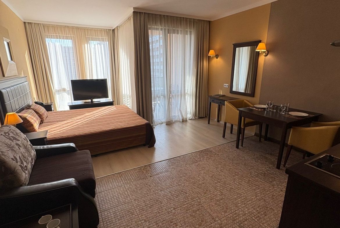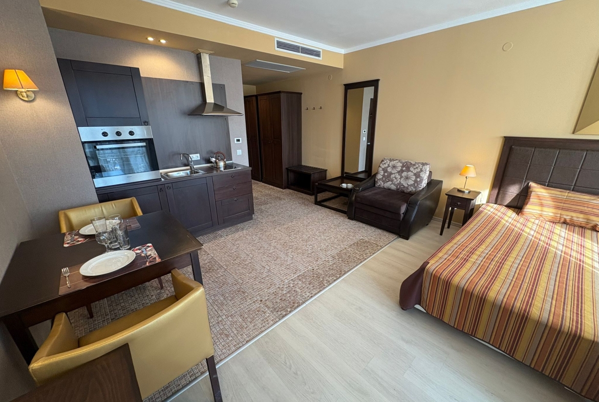 Предлагаемые студии полностью меблированы и оснащены всей необходимой бытовой техникой, подключены все современные коммуникации. Строительные и отделочные материалы соответствуют строгим европейским стандартам, что гарантирует безопасность и комфорт как для длительного проживания, так и для отпуска.